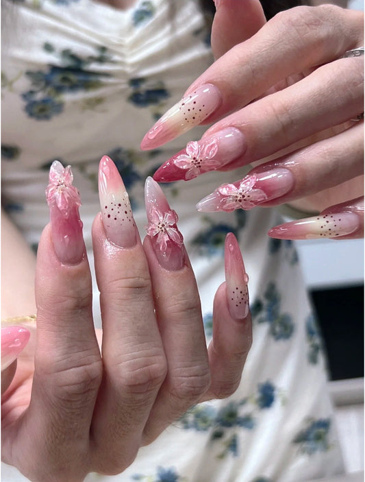 Simple Cute Short Almond Press-on Nail Set Glittering Nail Modern Coral Warm and Soft Tone Spring Elegant Graceful Nail